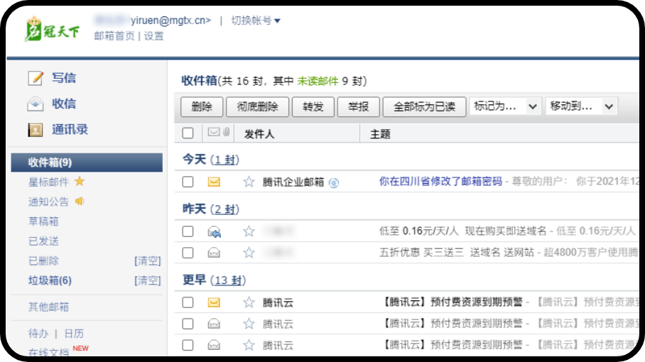 使用企业邮箱后,所有员 工邮箱都是"name@企业 域名" 形式,有助于树立 统一的企业形象。